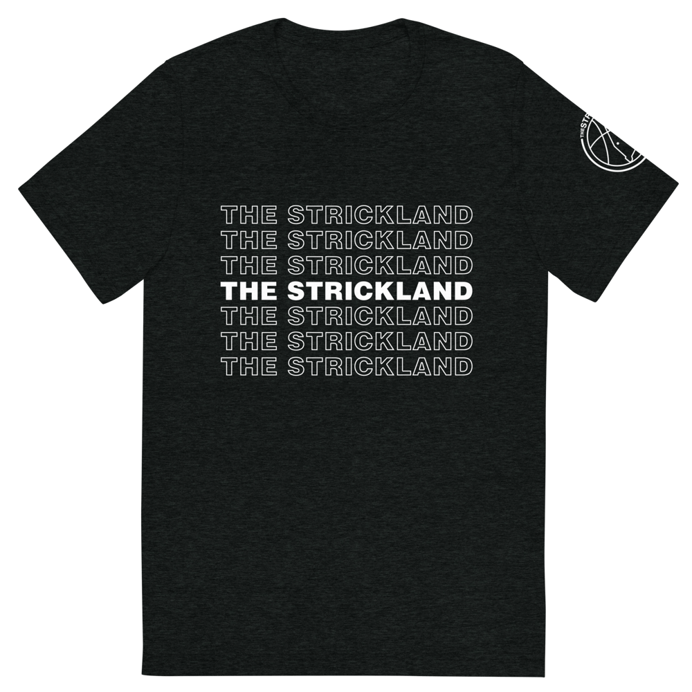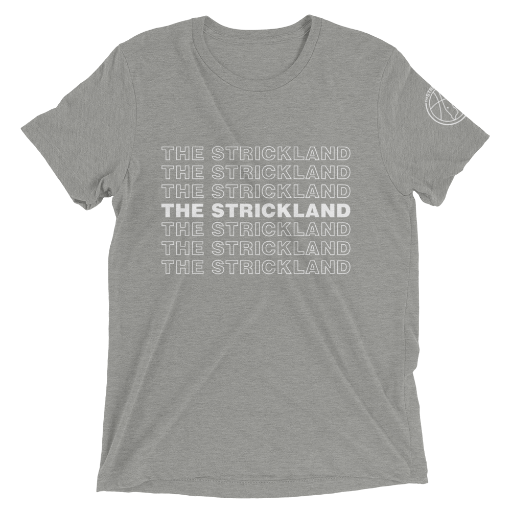 Ever shop at your local corner market and get thanked for your patronage with a nice "Thank You" plastic bag? This is like that, but a cool Strickland t-shirt, and it hopefully won't end up in a landfill for the next 2,000 years like that plastic bag.